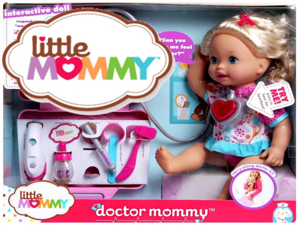 ¡Esta pequeñita no se siente bien, pero su mamita la puede hacer sentirse mejor! Mientras las niñas revisan a su “pequeña” con los instrumentos médicos incluidos, la muñeca interactuará con todo tipo de frases. Ella dice “¡Ahhh!” mientras usas el abate lenguas y se ríe cuando el martillo checa sus reflejos haciendo su piernita moverse hacia arriba (¡patea en realidad!). Con el estetoscopio realmente escucharás los latidos de su corazón mientras se encienden unas lucecitas. ¡Incluye también una jeringa, gafete con nombre y maletín de doctor en el que podrás guardar todo una vez que la bebé se sienta mejor!